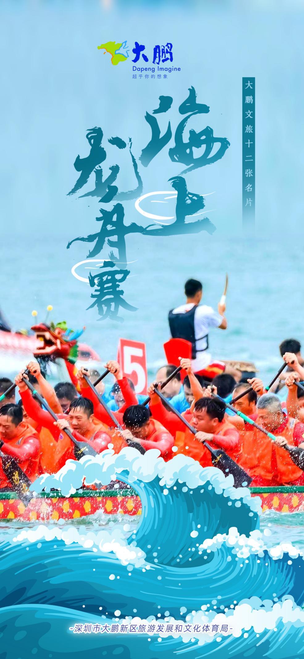 大鹏南澳举行的龙舟赛是深圳唯一的海上龙舟赛事,至今已传承七十多年。海上龙舟跟河道龙舟有很大的不同,因为海浪增加了龙舟前进的阻力,非常考验选手的体能和团队的配合。