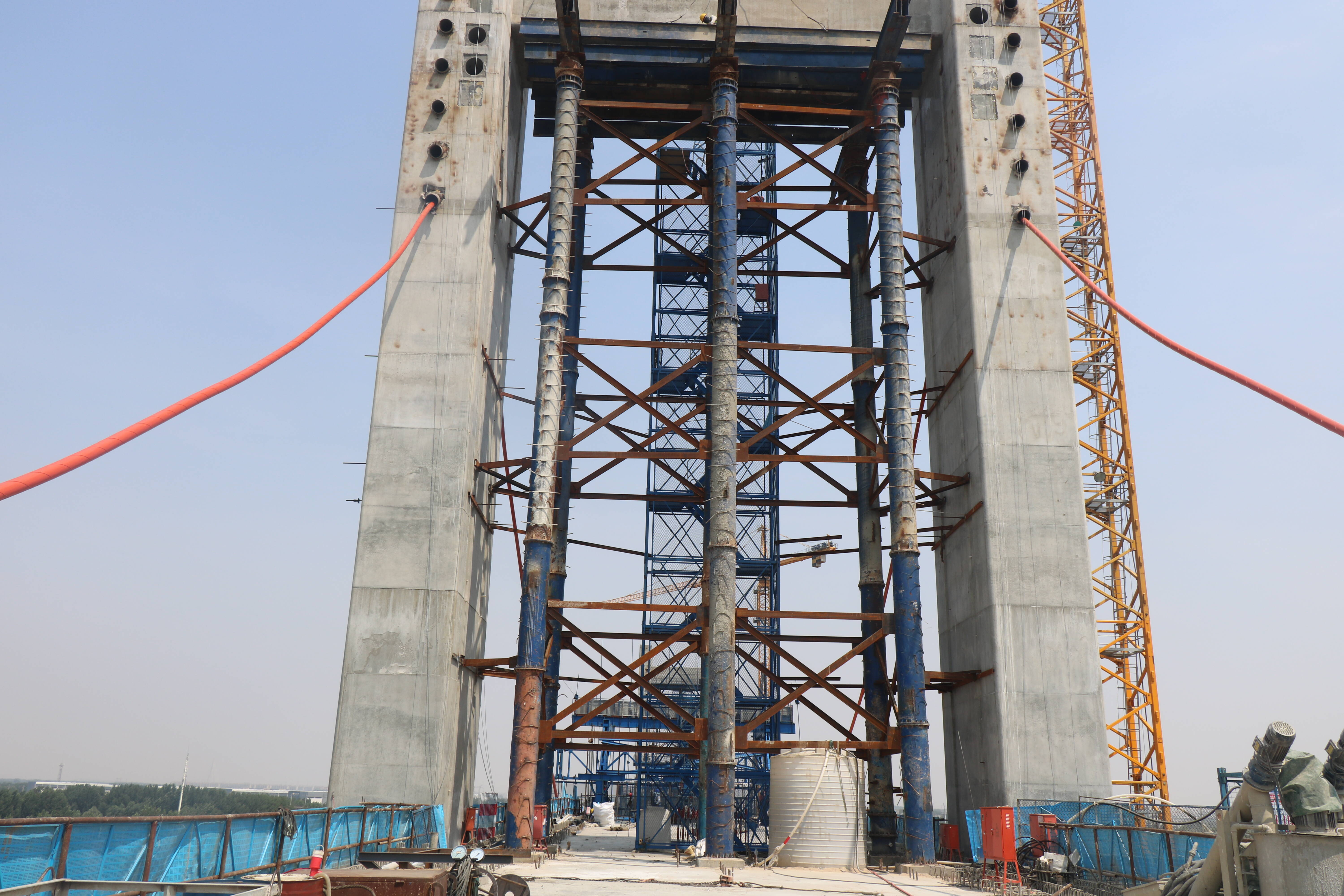在斜拉索施工过程中,需特别关注塔身及梁体内预埋套筒的定位精度,以确保其达到高标准要求。主要对主梁的线形、应力以及斜拉索索力进行严密监测和精准控制。鉴于施工环境涉及60米高空作业,施工难度显著增大,同时安全风险亦相应提升。