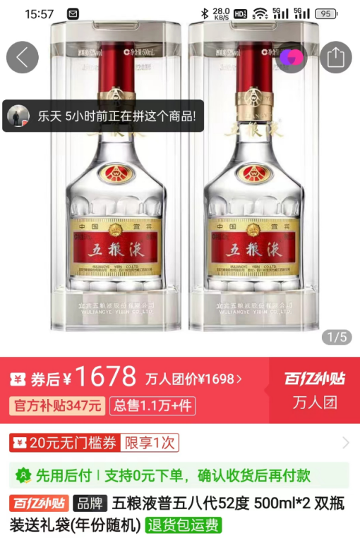 以五粮液为例,52度500毫升的普五八代,两瓶只要1678元,合一瓶839元,而这款酒的出厂价1019元/瓶,经销商卖一瓶就亏180元,这还没算上运输和储存成本。