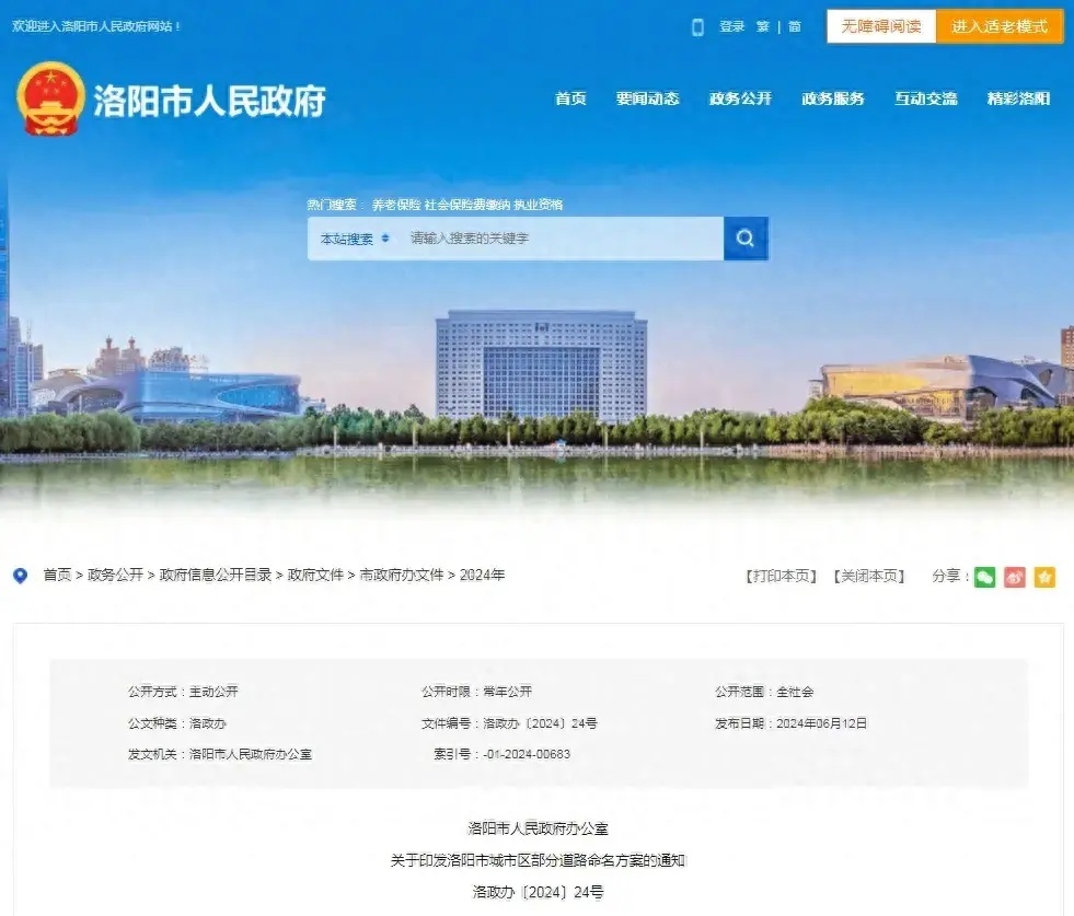 6月12日,据“洛阳发布”消息,洛阳市政府网站发布最新通知,事关城市区部分道路命名。