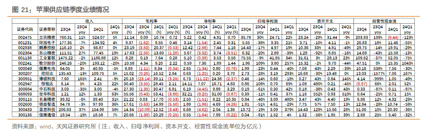 其中,就苹果供应链情况来看,尽管受2023Q1高基数影响,整体供应链业绩收入仍表现相对稳健,净利润同比增长明显。