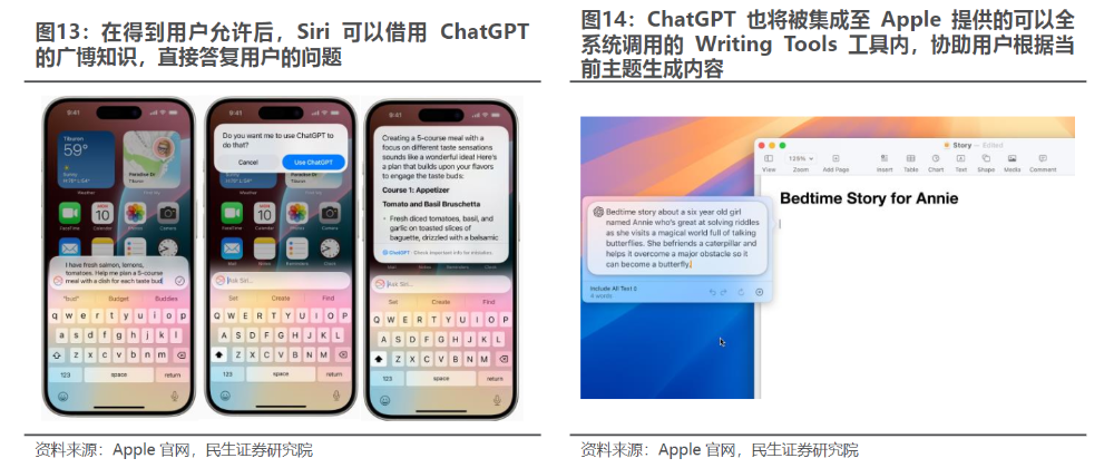 软件层面来看,民生证券认为,苹果个人智能化系统将赋能生态应用开发,推动AI应用创新,以及现有应用的革新,AI应用的相关公司或新增创新驱动力。