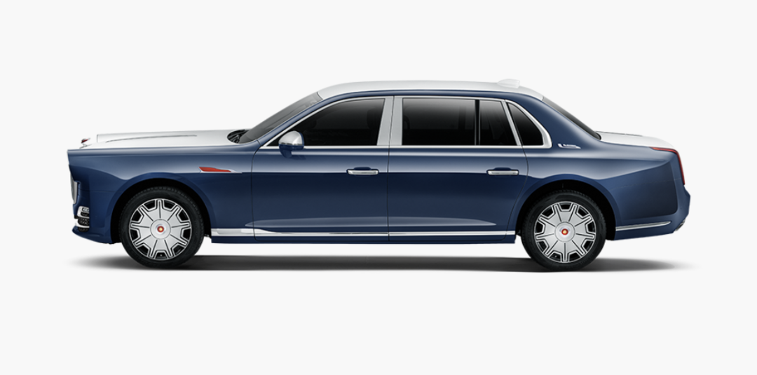 在外观方面延续了经典的红旗 CA770 风格,整体采用蓝白双色设计。