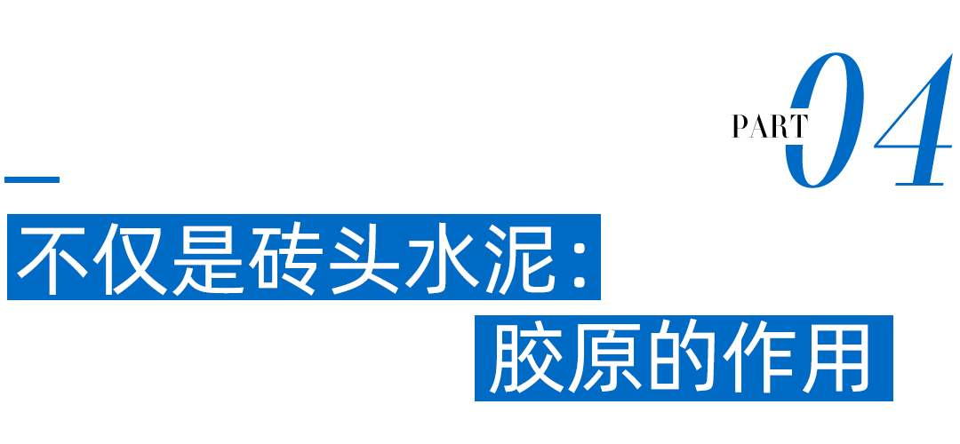 夏庆友教授认为胶原蛋白更像是钢筋而不是水泥,因为胶原蛋白在细胞外基质这个网络里更像是钢筋。而正如前面提到的,胶原蛋白还是细胞的床和沙发,细胞想要舒服,就必须有胶原蛋白。