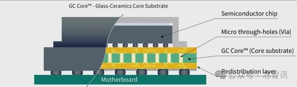 因此,电气硝子此次开发出的GC Core玻璃陶瓷基板材料是由玻璃粉末和陶瓷粉末低温共烧而成,拥有陶瓷的部分性质,不易产生裂纹,可直接使用CO2激光钻孔,降低量产成本。不仅如此,使用GC Core玻璃陶瓷基板材料的基板拥有较低的介电常数和极化损耗,可减少超精细电路的信号衰减,提升电路信号质量。所以,由电气硝子GC Core玻璃陶瓷基板材料所生产的基板较传统玻璃基板更为坚固,可进一步降低基板厚度。