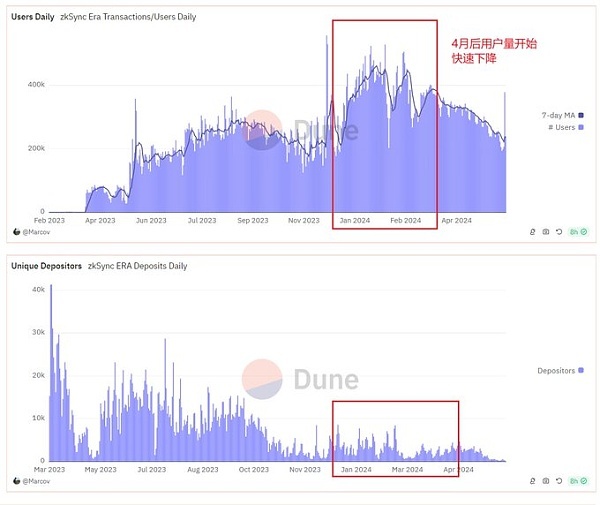 X用户@riyuexiaochu也做了一些数据分析,表示ZKsync用大量老鼠仓来收割,“证据1:在空投前3个月,用户地址增加了将近一倍。