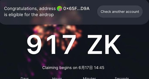如账户“0x65f8dfc419b418ae82f289059d038428d038cd9a”获得了917个ZK,而该钱包地址无论以太坊主网,还是lite网,还是era网,全部0交互0余额。