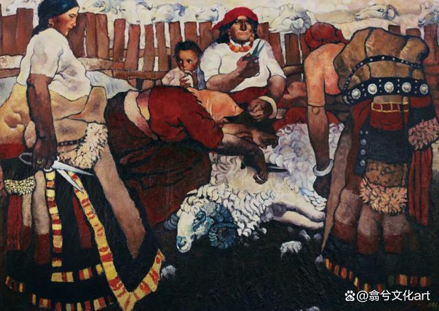 周春芽《剪羊毛》170×236cm 油彩画布1981年龙美术馆藏