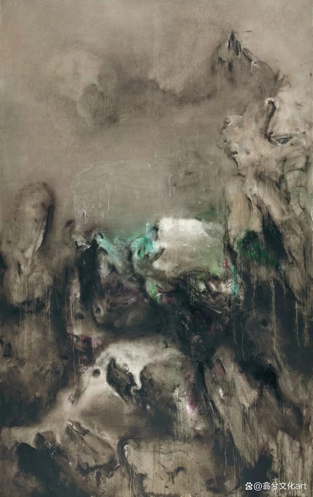 周春芽《山石与烟云》360×220cm 布面油画2003年