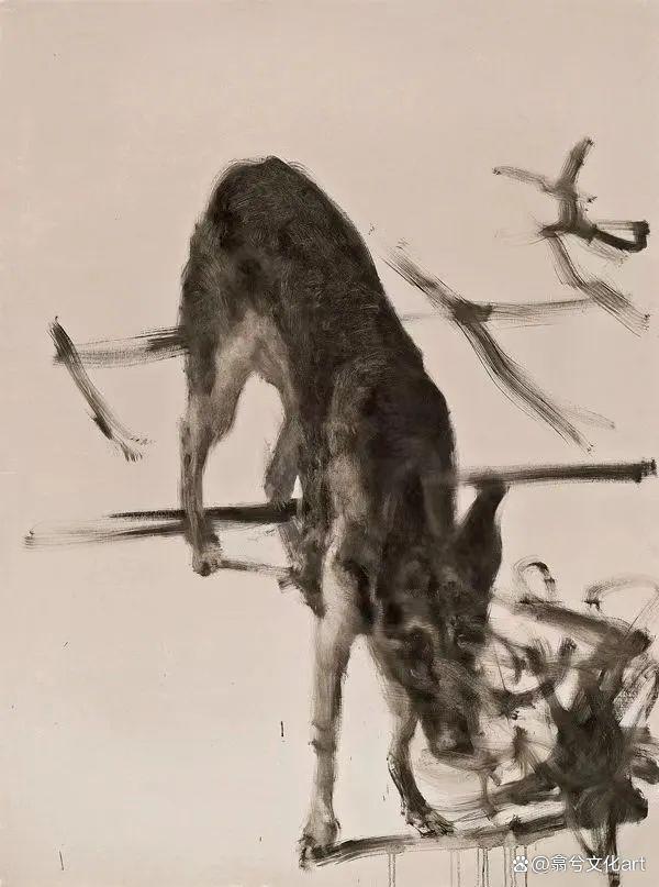 1999年,黑根去世,由朝夕相处6年到最后诀别,沉淀了周春芽对狗的认知,也激发了他对狗与人类本性的命运共同思考。待黑根去世后两年,他便继续开始延续停顿许多时日的《绿狗》系列创作,这是艺术家填补自己情感空缺的方式,也是缅怀黑根的一种情感寄托。绿狗这一形象,在如今成了周春芽的标志性符号,让他的作品成为了独一无二的存在。