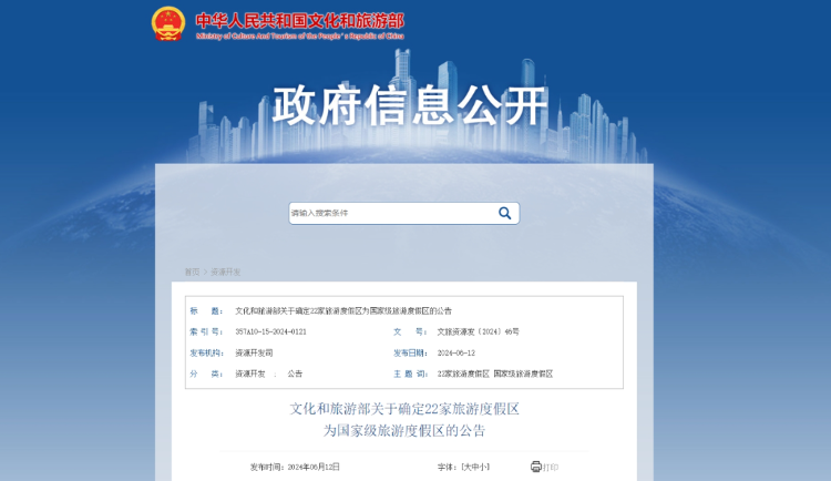 确定全国22家旅游度假区为