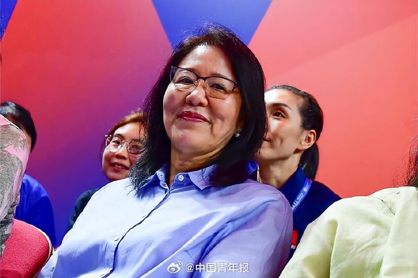 本场比赛,中国女排原主主教练郎平出现在观众席上,为中国女排加油打气。