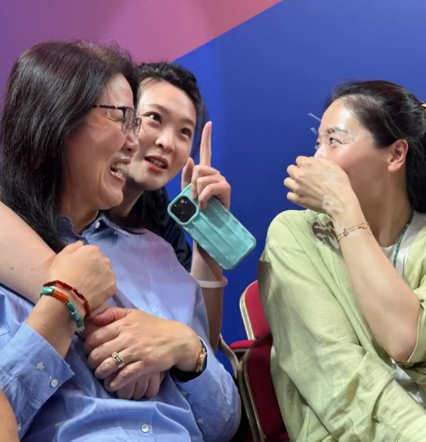 魏秋月和惠若琪也出现在现场,此时三任中国女排队长同框。