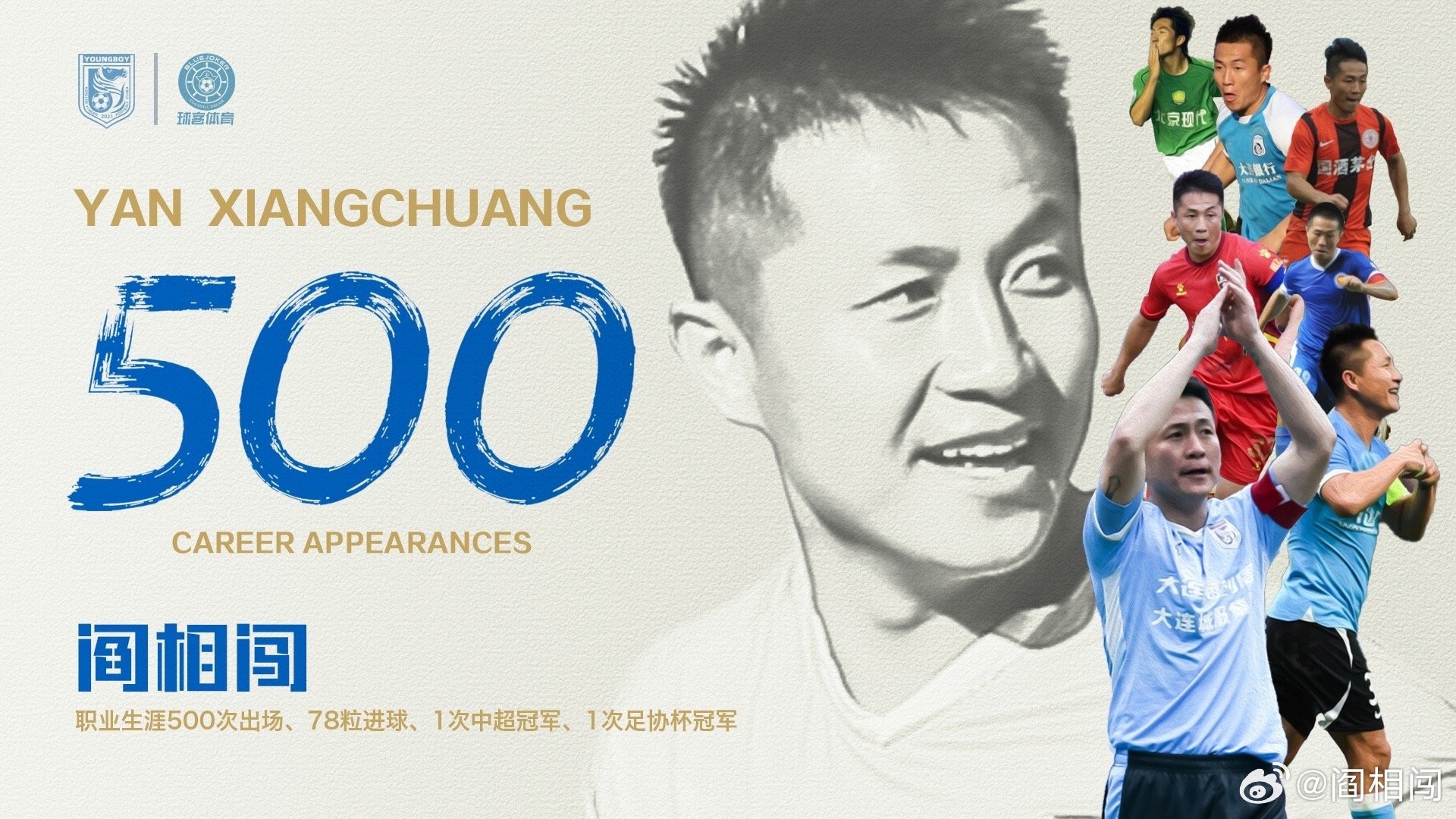 6月15日,中甲第14轮,大连英博主场0-3不敌云南玉昆,这场比赛是37岁阎相闯的职业生涯第500场比赛。今天,阎相闯在微博上感谢了球迷们的支持。