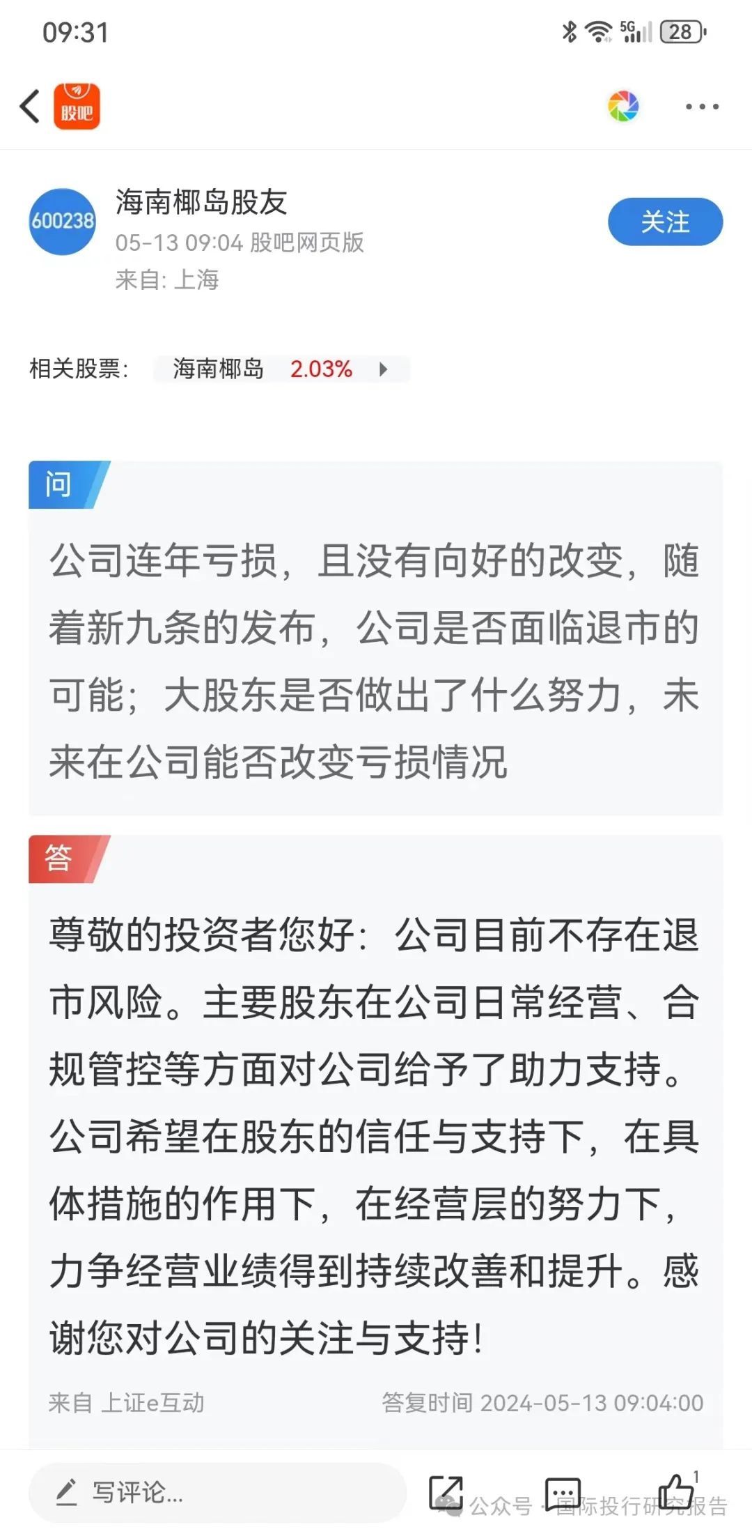 证监会海南局处罚海南椰岛背后:二股东成冤大头!出资近3亿入坑已跌近一半宁可被交易所谴责也不增持!不扭亏就有ST风险!