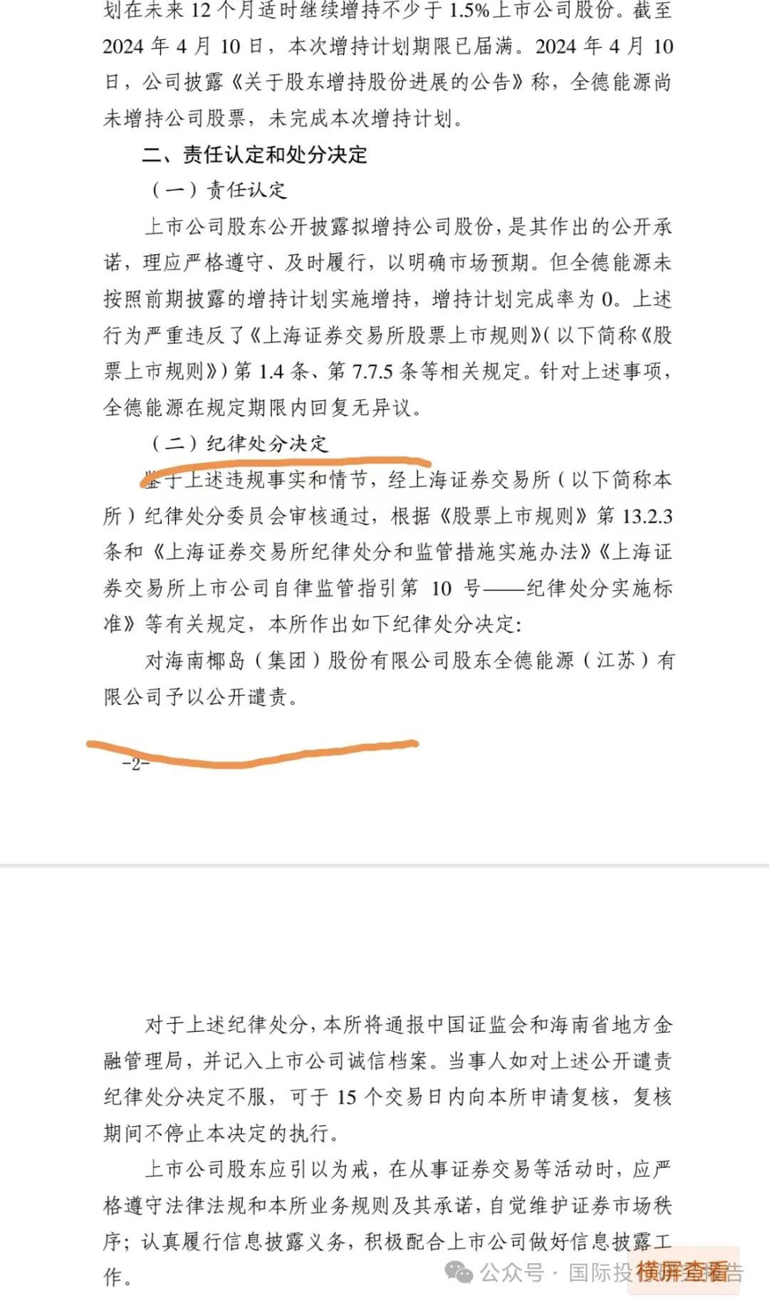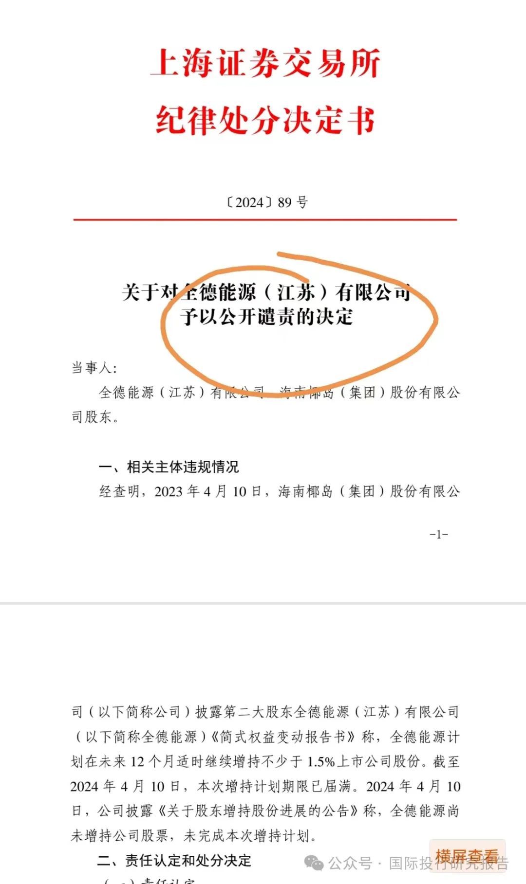 4、目前海南椰岛有7.76万股东,去年是9.35万股东,也就是说去年很多股东可能因为全德能源的入坑而跟了进去,结果都割肉走人了。而全德能源早在2023年就公告过准备增持1.5%股份,但看着股价的下跌,在1年内1股都没买,上交所对全德能源的这种行为进行了公开谴责(还是不知道这个是什么处罚,但有一点就是全德能源宁可被处罚也坚决不买股票了)。