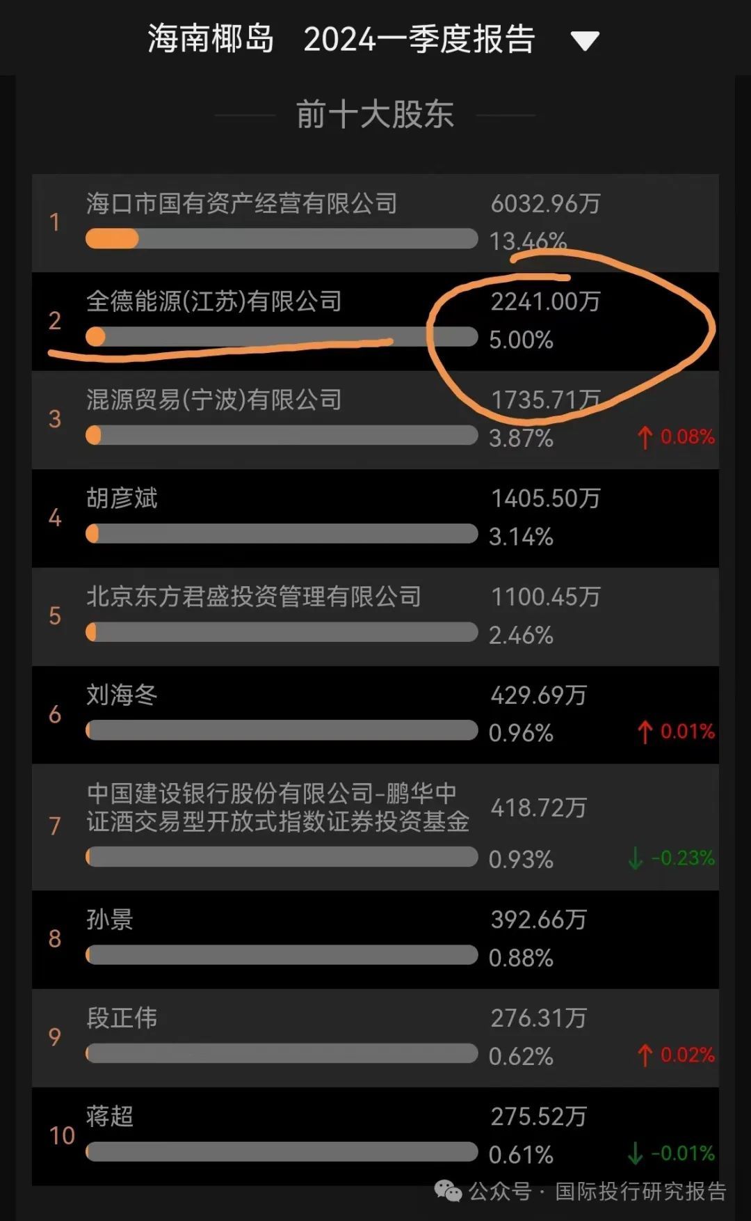 3、2023年全德能源通过拍卖和2级市场购买获得了海南椰岛5%的股份,成为第二大股东,而第一大股东是海口市国资委占13.46%股份。当时全德能源的拍卖价格为13元多,总共用了差不多3个亿,而现在海南椰岛的股价只有7.02分了,也就是说全德能源从市值上看跌了差不多一半资金了。
