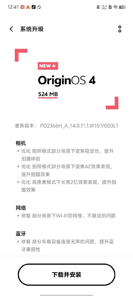 据CNMO了解,新版本的OriginOS 4系统(版本号PD2366H_A_14.0.11.1.W10.V000L1)为用户带来了更为出色的相机性能和更为稳定的网络连接体验。此次更新安装包容量达524MB,相比上周推送的版本,新增了多项关键优化。