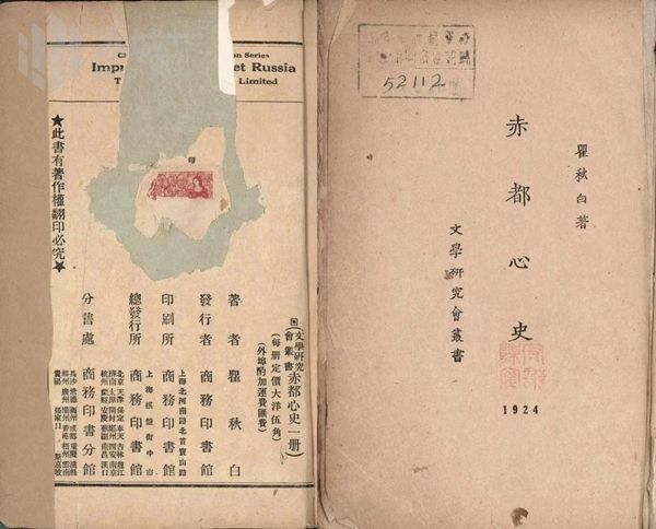 在黑龙江大学博物馆馆长臧伟强的引导下,记者见到两册百年前的原版图书——《新俄国游记》与《赤都心史》。1922年商务印书馆印行的《新俄国游记》(1953年始复名为《饿乡纪程》),讲的是作者瞿秋白乘中东路火车北上赴苏前的见闻与感想;1922年商务印书馆推出的《赤都心史》,讲的则是瞿秋白到红都莫斯科后的见闻与感受。《瞿秋白文集》编辑组在《出版说明》中特地谈到这两本姊妹篇图书的分量,“要作为中国思想史上的资料和优秀的文学作品来留存。”这两本书均为初版本,历经百年,堪称吉光片羽,难以觅到。