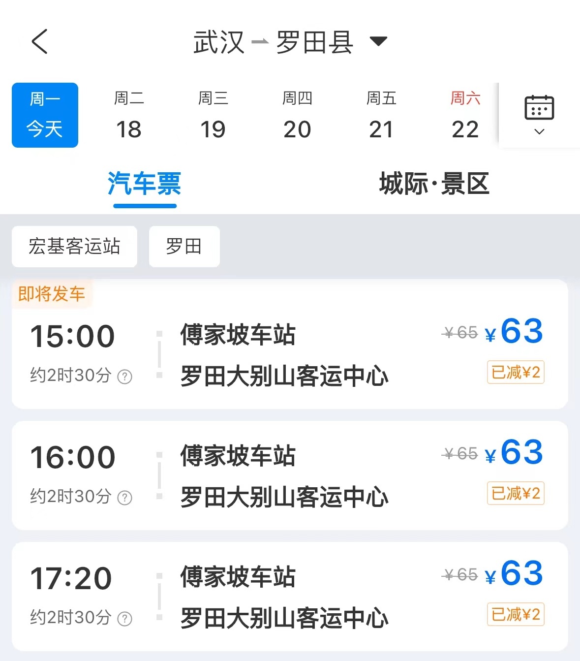 傅家坡客运站通往罗田的车次正常营运中。图/携程