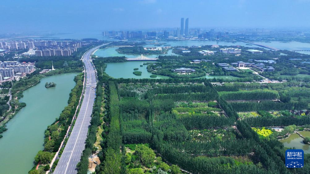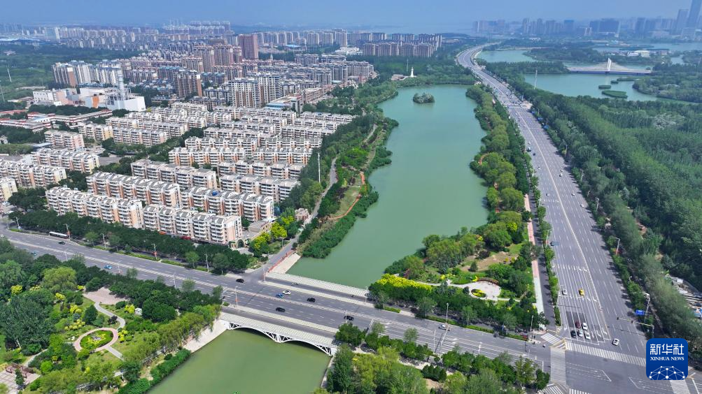 这是6月5日拍摄的宁夏银川市典农河(无人机照片)。