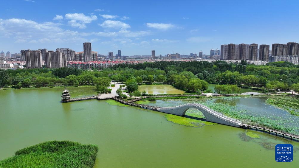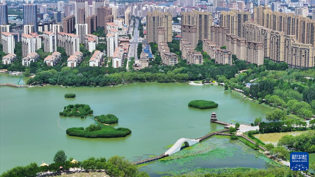 这是6月11日拍摄的宁夏银川市宝湖国家城市湿地公园(无人机照片)。