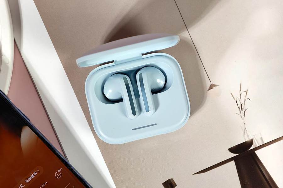 Redmi Buds 6S依然延续了轻巧的设计,耳机充电盒采用云朵设计语言,配合高光与磨砂两种工艺的组合,让充电盒看起来非常精致。充电盒加上耳机的重量只有38g,携带起来也非常方便,可以为口袋减负。