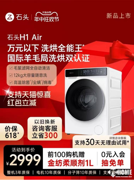 以上市不久的石头分子筛洗烘一体机H1 Air为例,不仅售价只要2999元,还支持3年整机质保和分子筛10年质保,性价比优势非常明显。