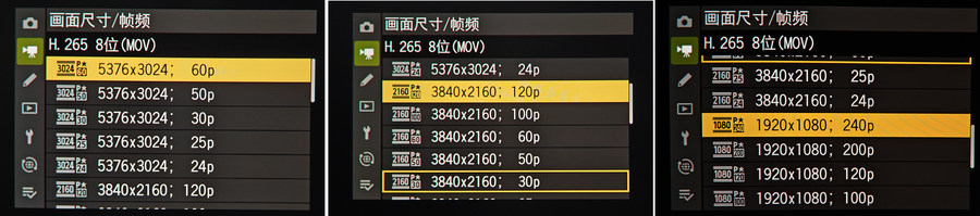 其次,在全新传感器与EXPEED 7处理器的支持下,尼康Z6III在视频拍摄方面也迎来前所未有的加强,不仅支持12位6K N-RAW和ProRes RAW HQ的机内视频录制,以及10位5.4K ProRes 422和H.265,同时可实现长达125分钟的4K /60p内录以及1080/240p升格视频录制。