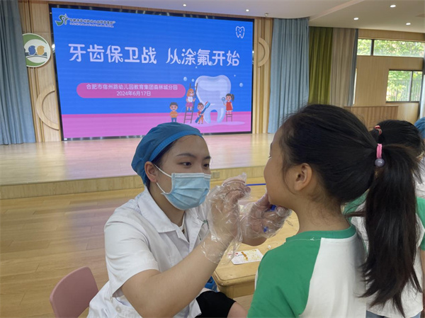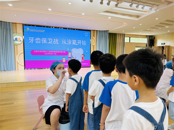 为了加强幼儿口腔卫生,有效预防幼儿牙齿疾病的发生,降低龋齿患病率,切实做好幼儿牙齿卫生保健工作,6月17日下午,庐阳区牙病防治所的医护人员来到合肥市宿州路幼儿园教育集团森林城分园开展幼儿口腔保健第二次涂氟活动。