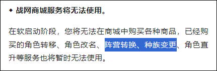 国服大概率要提前开放两个玩家期待已久的增值服务了,那就是WLK怀旧服的转种族和转阵营的功能。因为官方在公告中就已经提到了这些: