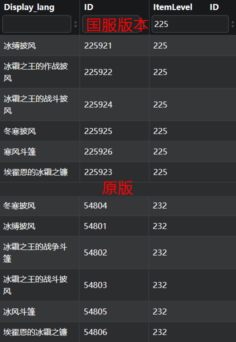 如下图,我们可以看到火焰节新增了装备等级为225的新掉落,和旧的火焰节掉落物品ID也是不同的。