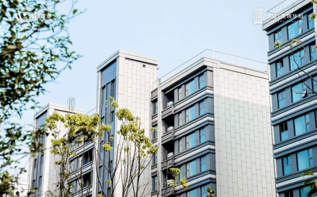 炜赋·龙腾华府选用保温一体板+金属线条+大面积LOW-E玻璃等材料,建筑线条挺拔硬朗,浅色系搭配简约大气,阳光映照下更显通透质感。