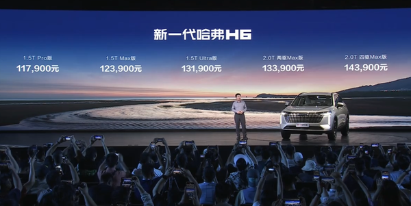 目前,新一代哈弗H6提供五个版本,其中1.5T Pro版本售价为11.79万元、1.5T Max版本售价为12.39万元、1.5T Ultra版本售价为13.19万元、2.0T 两驱Max版本售价为13.39万元、2.0T 四驱Max版本售价为14.39万元。预售用户享受99元抵扣3000元购车金权益,叠加其它优惠,新一代哈弗H6成交价格最低为10.39万元起。
