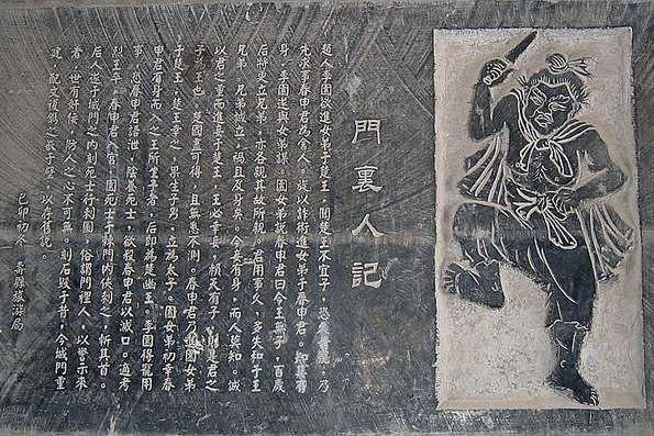 翁飞:对。寿县的城门很有意思,南边是通淝门,东边是宾阳门,北边是靖淮门,西边是定湖门。南门就是春申君进来的门,那里有一个春申君广场,春申君驾着马车进了城门就被李园射杀了。在城瓮东墙上嵌着一块石刻,上刻着一个作行刺状的石人,这就是“寿州内八景”之一的“门里人”。被刺杀的人就是春申君,而主谋正是春申君自认为待其不薄的门客李园。