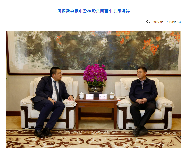现在能看到的一条消息是,2019年5月,根据瓦房店市人民政府官网发布文章称,中盈控股集团董事长段洪涛到该市考察,段洪涛是瓦房店市复州城镇人,打算在该市投资建设复州城大市场,主要从事农产品批发和销售。