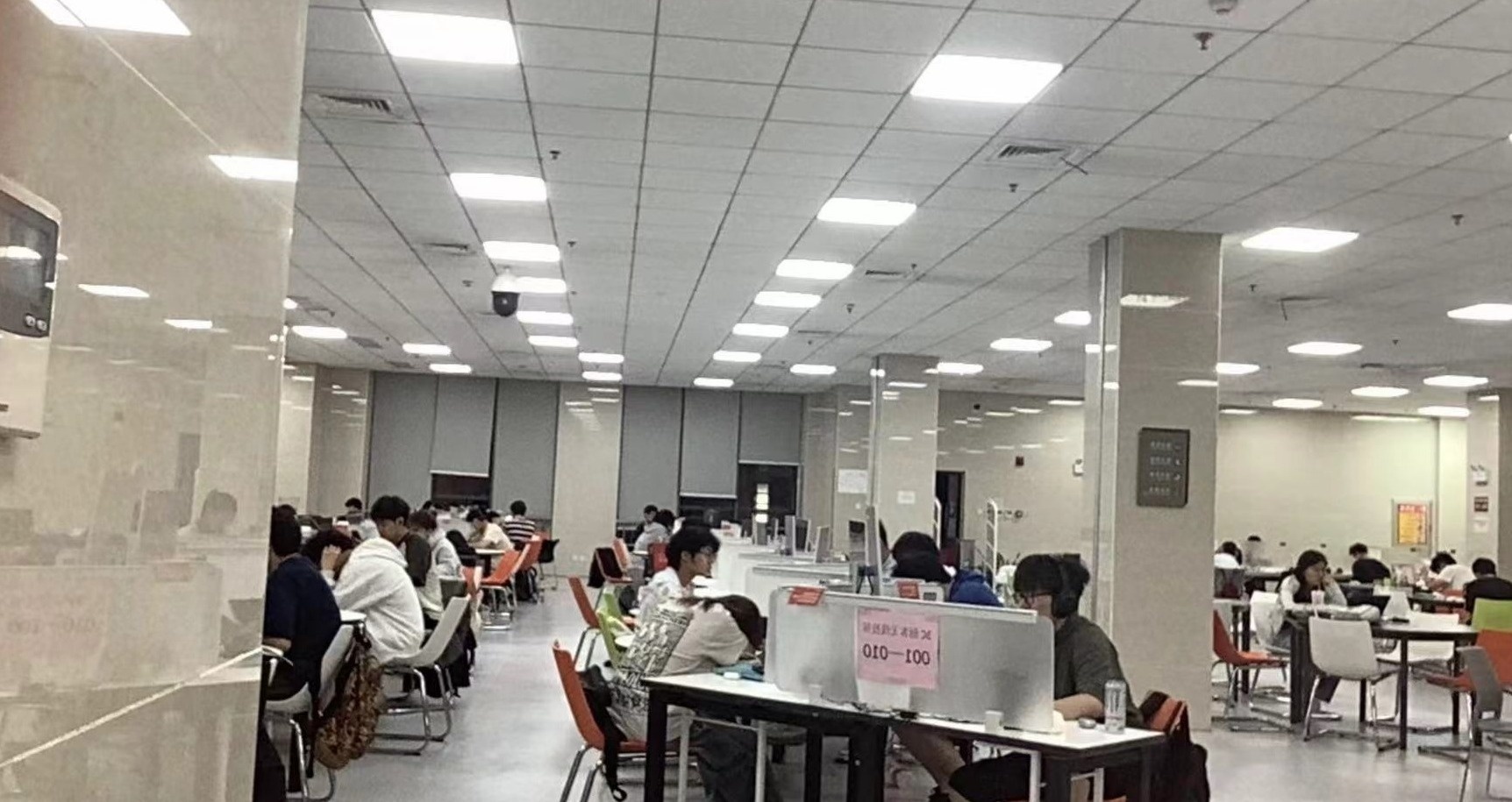 随后,该博主还补了一张凌晨三点的图书馆照片,虽然这时已有部分空位,但是入座率依然在一半以上。