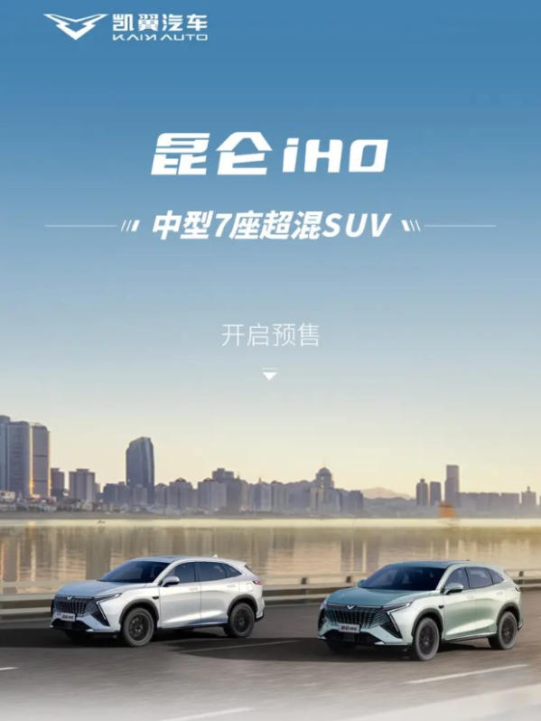 6月21日,凯翼汽车第一款插电混动中型SUV——昆仑iHD正式启动预售,价格从11.99万元到15.99万元不等。早在6月初,昆仑iHD就已经下线,并开放预订,它集合了奇瑞集团最新的高端底盘技术、比亚迪弗迪动力的混动系统,以及宁德时代的电池技术。