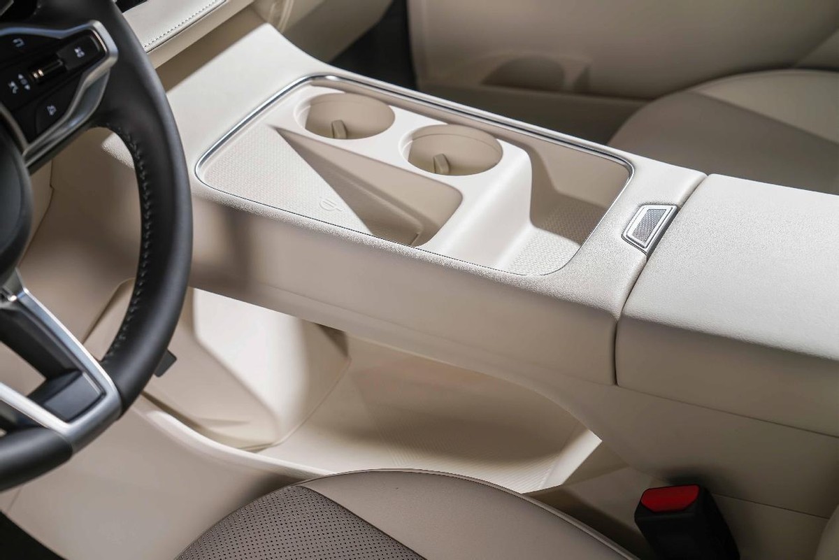 新一代哈弗H6采用了极具新能源风格的内饰设计,注重颜值与用户体验的结合。其内饰设计不仅满足家庭成员的审美需求,还提供了更便捷的怀挡设计和多处储物空间。车辆配备了50W无线快充、60W的Type-C闪充等充电口,极大提升了出行的便利性。