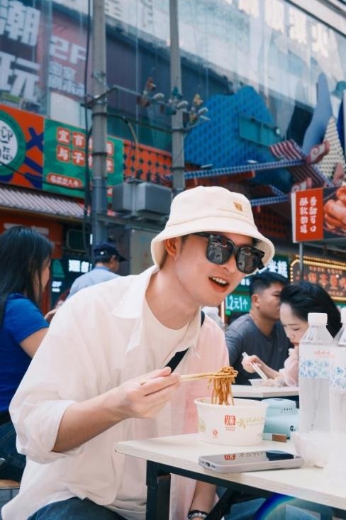 星辰在带游客体验武汉过早时为其拍摄的照片。图/星辰