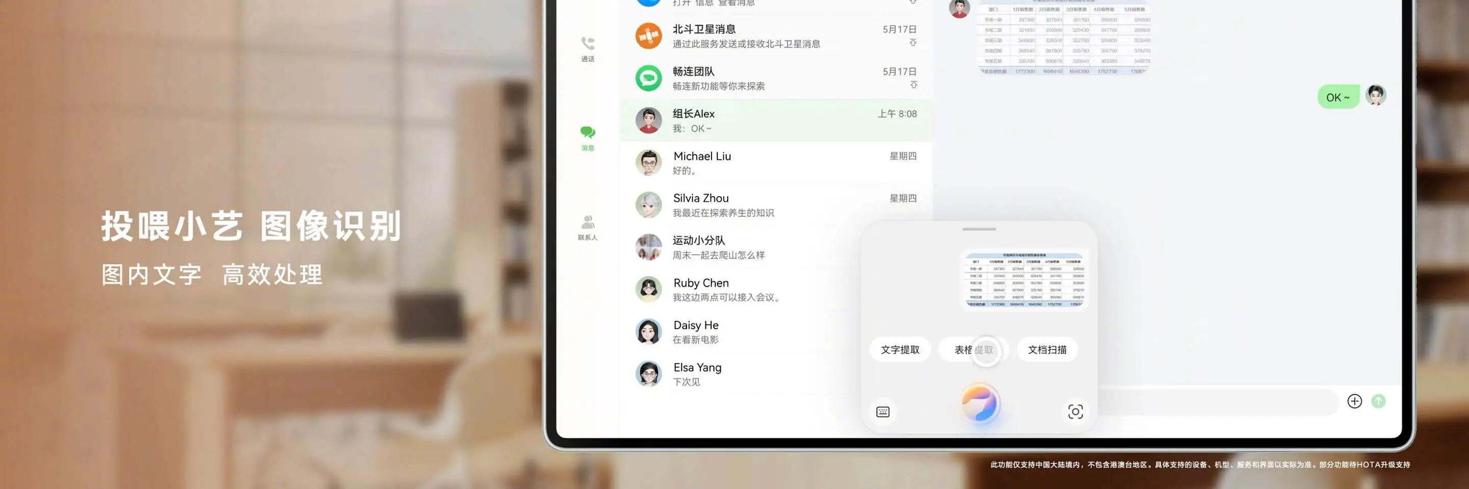 “小艺智慧助手”正式升级为基于盘古大模型 5.0 的“小艺智能体”。无需唤醒小艺,将内容拖放到导航条上就可随时“召唤”,并完成一系列后续操作。例如,当把图片“投喂”给小艺之后,即可立即生成一张图表;或者将文档“投喂”给小艺之后,生成文本摘要或问答。
