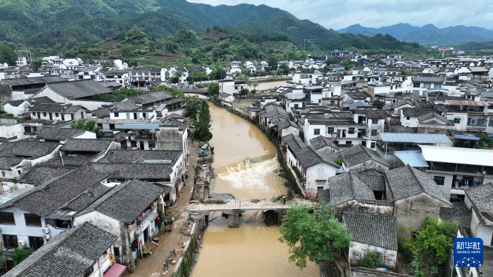 6月20日晚,位于安徽省黄山市徽州区呈坎村的环秀桥受洪水强烈冲击,木结构桥亭被冲毁,石质桥面、桥墩暂时完好。目前,有关部门已打捞出部分原构件,并继续进行寻找打捞工作。环秀桥为两墩三孔石桥,属于第五批全国重点文物保护单位呈坎村古建筑群。