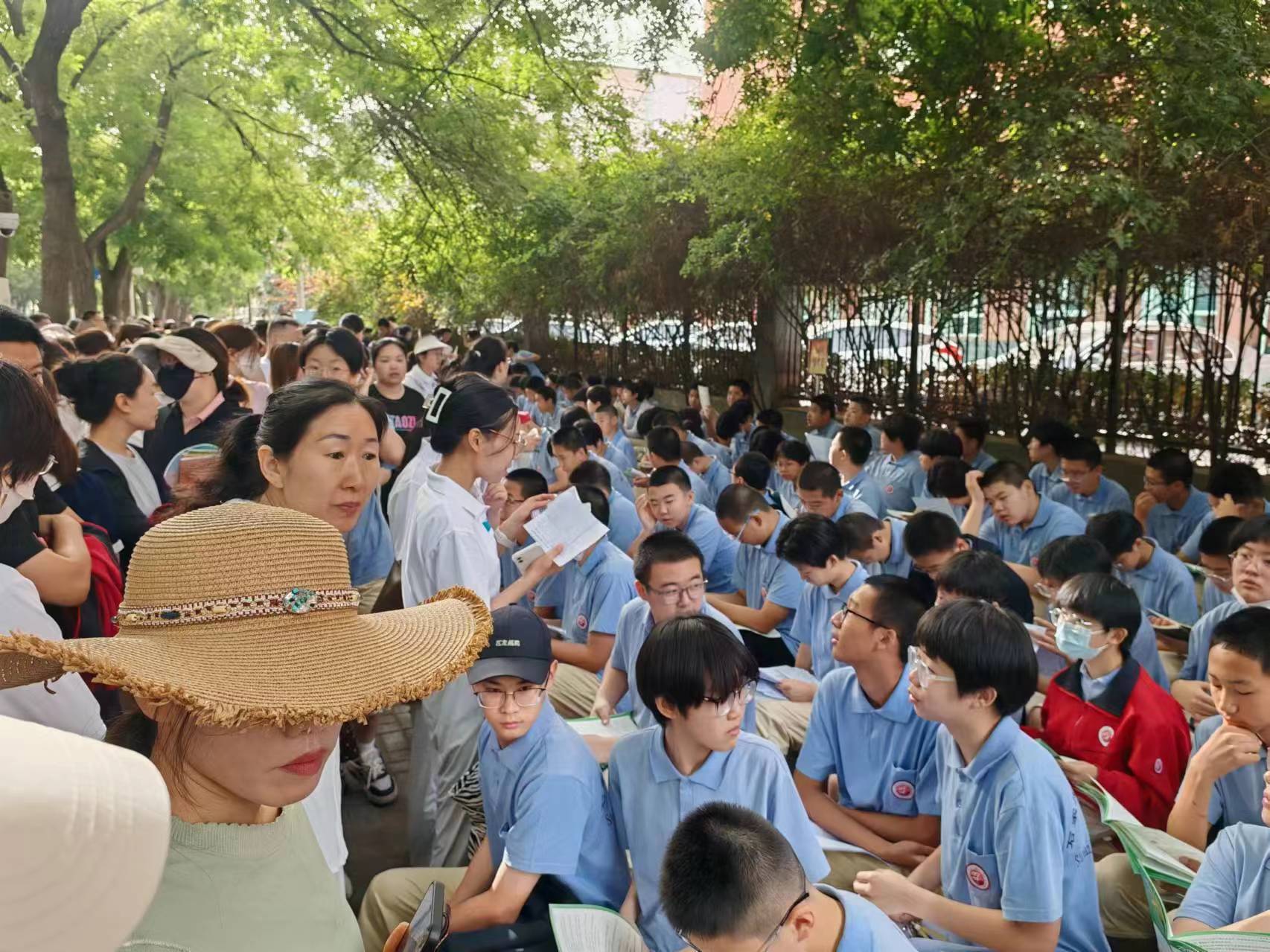 石家庄市第二十五中考场外备考的学生。