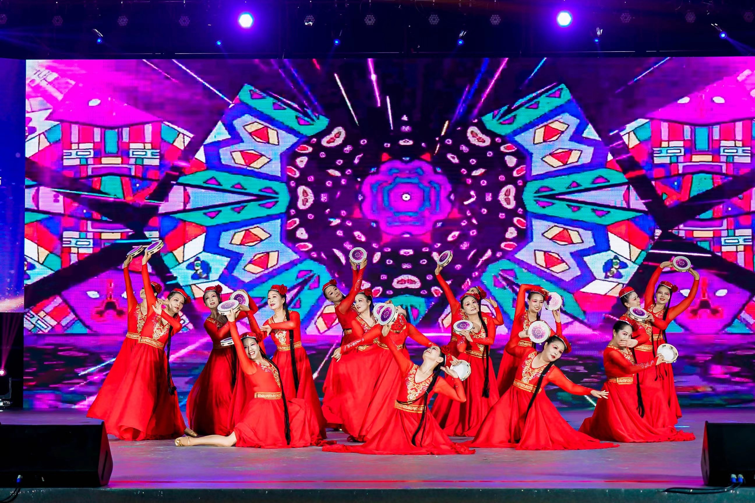 赛事舞台上,每支参赛队伍的表演都独具特色,一支支舞蹈既体现了广场舞的普及性,又充分展示了各地的文化魅力。其中,安徽省淮北市相山区文化馆舞蹈队将传统的安徽花鼓灯融入广场舞动作;宁夏银川市文化艺术馆舞蹈艺术团以国家级非遗项目“黄羊钱鞭”为道具,融合舞蹈、健身和体育元素;上海市奉贤区南桥镇社区舞蹈队以一曲《最可爱的人》向英雄致敬;彝族烟盒舞《马缨花》与广场健身舞蹈巧妙结合,展现了传统与现代的完美交融……