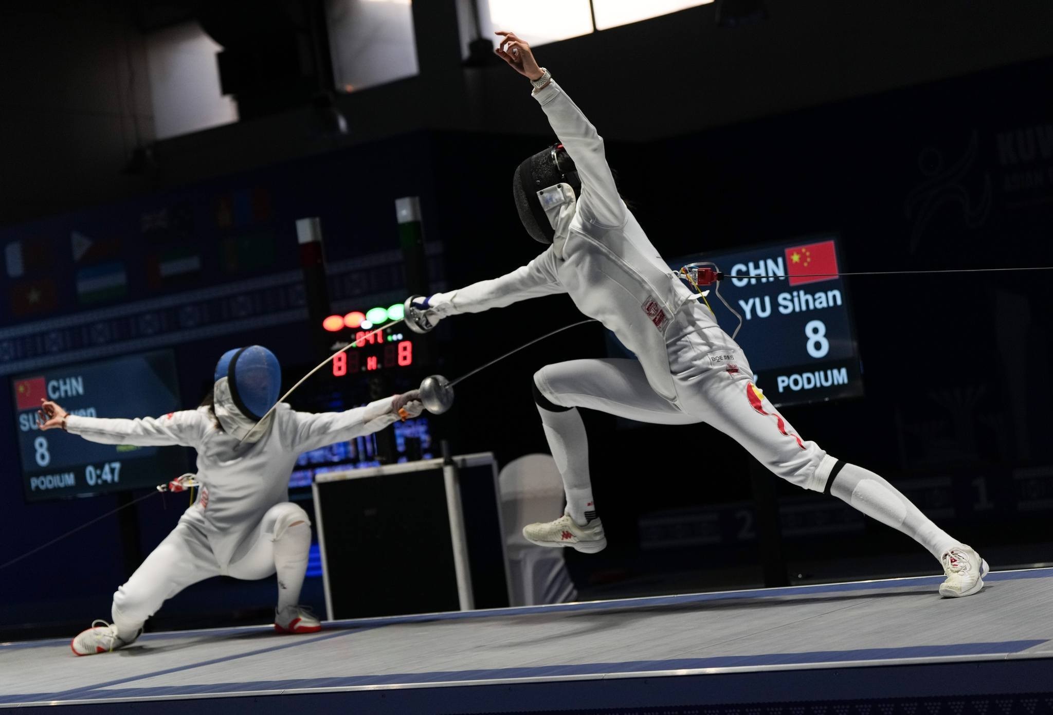 这是巴黎奥运会前中国击剑队参加的最后一站国际比赛。重剑项目,中国队共派出四名女子选手,唐君瑶32进16时遭遇队友余思涵被淘汰,许诺八强争夺中不敌韩国名将康映美。余思涵携手孙一文顶峰相见,最终9比8战胜孙一文,两人包揽个人赛金银牌。