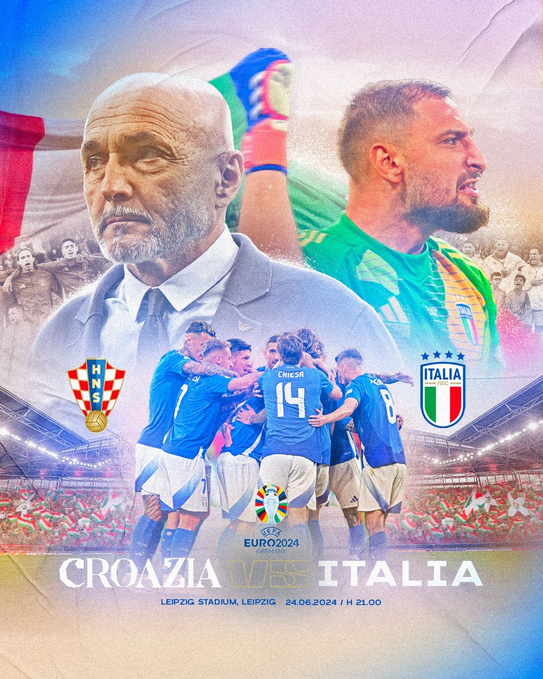 北京时间明天凌晨3点,意大利将迎来欧洲杯小组赛第三轮对阵克罗地亚的比赛,赛前,意大利队官方在社交媒体上晒出了本场比赛的预热海报。