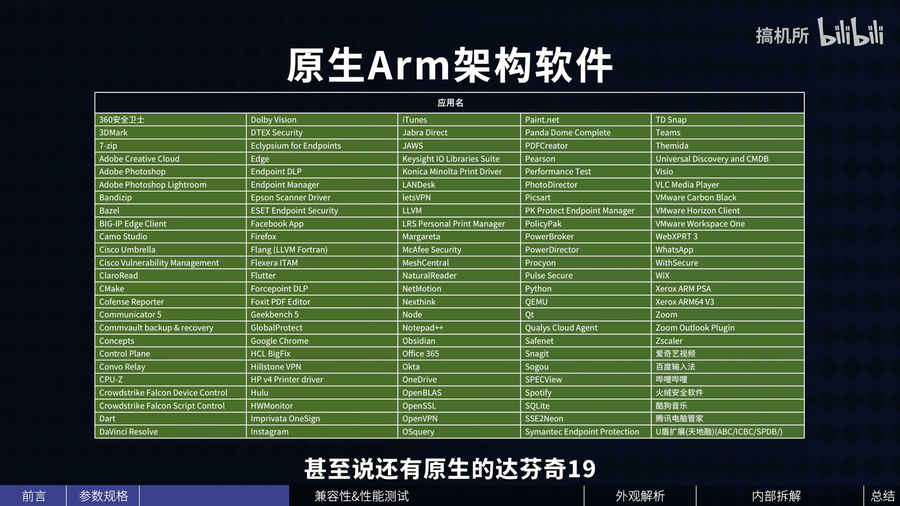 其实Windows on ARM生态这两年的进步十分明显,在 @爱搞机 的测试中可以看到,原生ARM架构软件规模已经相当可观,涵盖了微软Office全家桶、Adobe Photoshop/Lightroom等专业软件,甚至还有原生的达芬奇19。此外还有爱奇艺、B站、360安全卫士、腾讯电脑管家、百度输入法等常用软件也已经有了原生ARM版本。