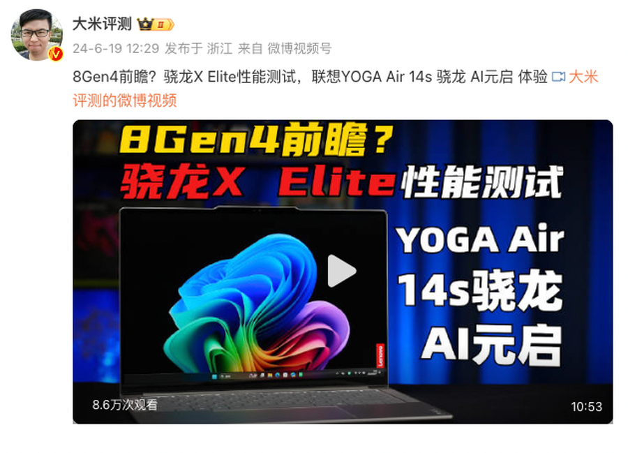 作为ARM架构下的全新PC平台,骁龙X Elite在性能、功耗上的表现,以及最关键的应用适配方面格外引人关注。6月18日,首批搭载骁龙X Elite的笔记本产品终于迎来上市,一些国内知名科技博主也对相关产品进行了详细测试,让大家对骁龙X Elite有了更加直观详细的了解。