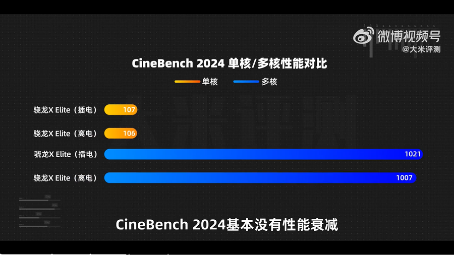 而且两位博主的测试数据均显示骁龙X Elite即使在仅用电池供电的情况下,性能表现与插电时几乎没有什么差别,延续了高通在移动PC领域历年积累的优势,而传统X86笔记本在拔电后的性能损失较为明显,会让笔记本的响应速度变慢,影响用户体验。