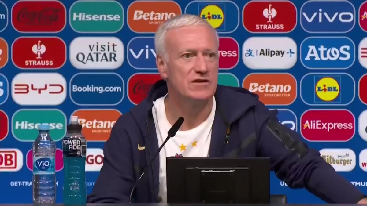 北京时间6月26日00:00,法国队将在欧洲杯小组赛末轮对阵波兰。比赛前夕,法国队主教练德尚出席了新闻发布会。